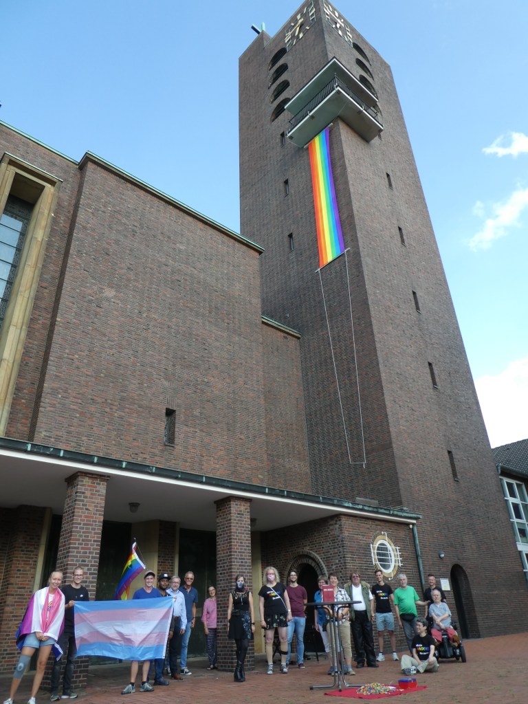 Am Dienstagabend (18.08.2020) trafen sich Mitglieder*innen der Queergemeinde und Menschen aus unterschiedlichsten Vereinen der queeren Community Münsters zu einer außergewöhnlichen Aktion.