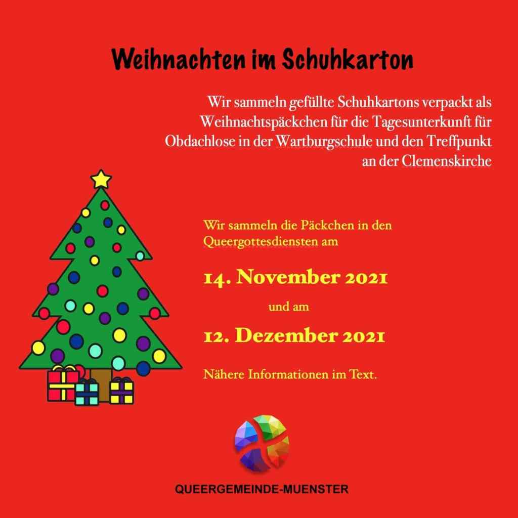 Die Päckchen können bis zum 12.12.2021 in der Mehrzwecksakristei in der Krypta der St. Antoniuskirche abgegeben werden (zu Gottesdienstzeiten).