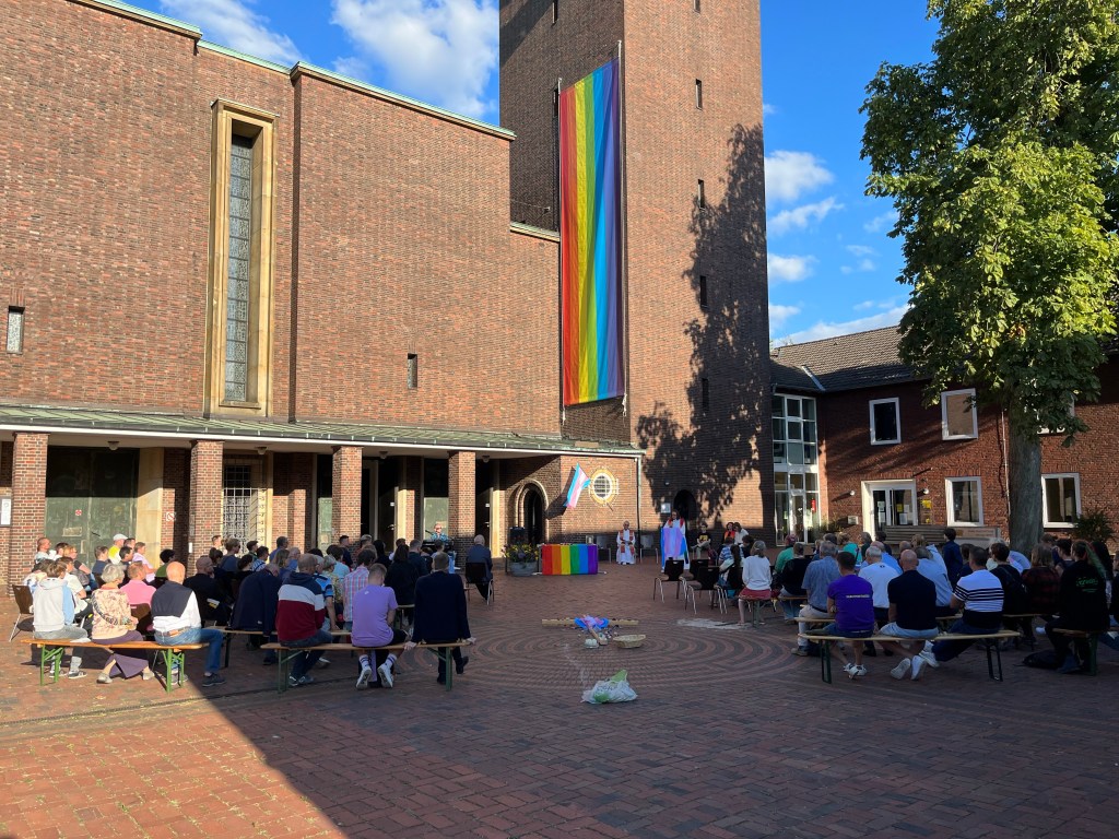 Bereits am Sonntag zeigten die queeren Vereine in Münster, mit der Teilnahme an einem QueerGottesdienst, veranstaltet von mehreren queer-christlichen Initiativen, u.a. der Queergemeinde Münster, mit Fürbitten und einem Gebet für das Opfer, ihre Solidarität und um auch ein Zeichen des Zusammenhalts in Münster zu setzen.