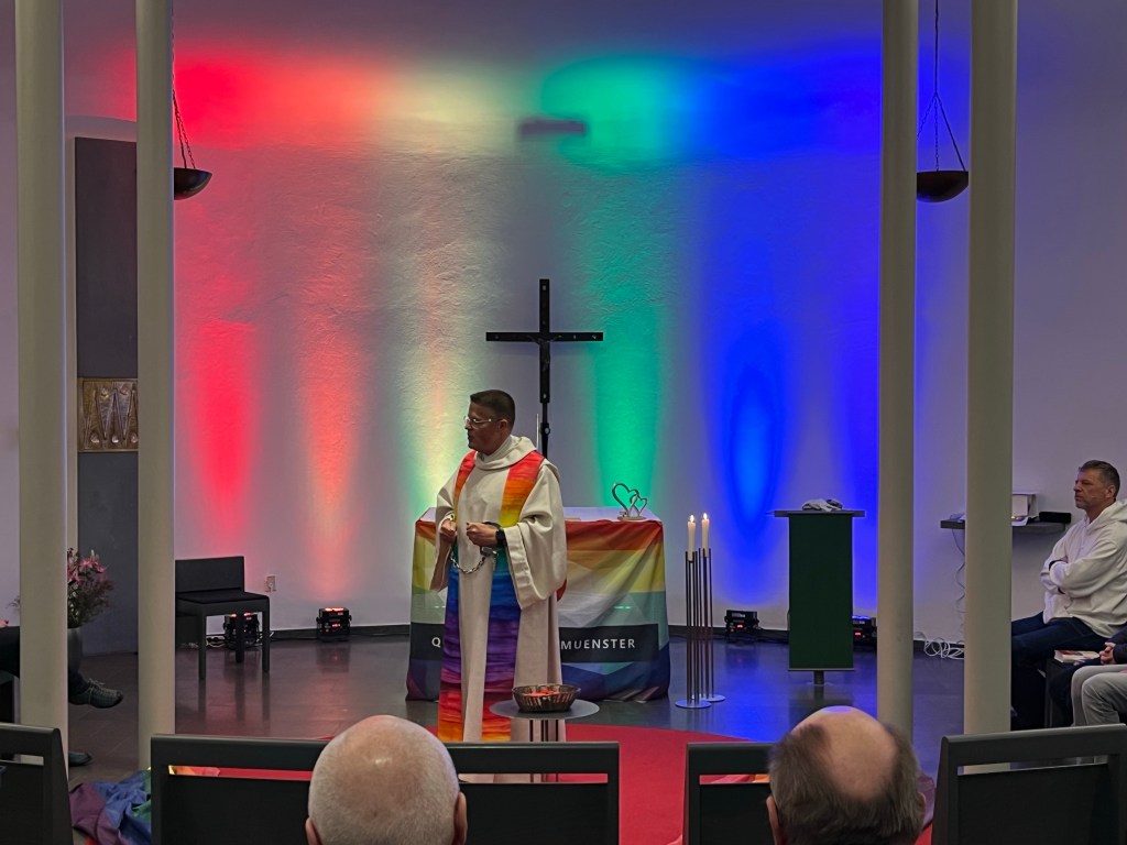 Am kommenden Sonntag um 17:00 Uhr findet die Flaggenhissung am Kirchturm der Hl. Geist Kirche statt. Diese wird aus Solidarität und im Zusammenhang mit den Münsteraner Prideweeks weithin sichtbar. Herzliche Einladung auch hierzu!